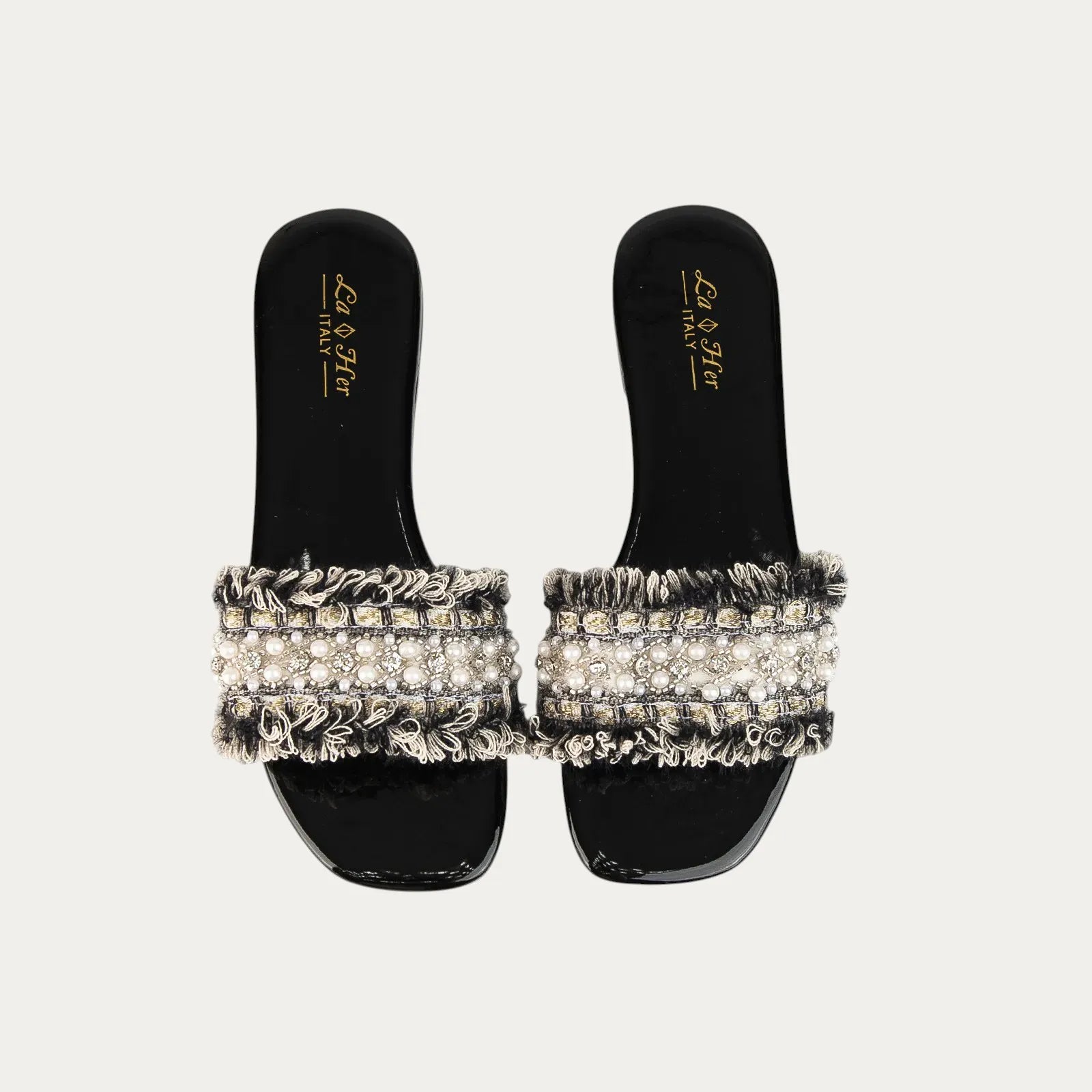 The La Her Noor Black Sandal combines minimalist design with expert craftsmanship for a polished, contemporary look. Its sleek black finish provides versatility, seamlessly pairing with both casual and dressy ensembles. Engineered for comfort, the sandal offers reliable support and a secure fit, making it ideal for extended wear. Elevate your footwear collection with this stylish yet practical choice.