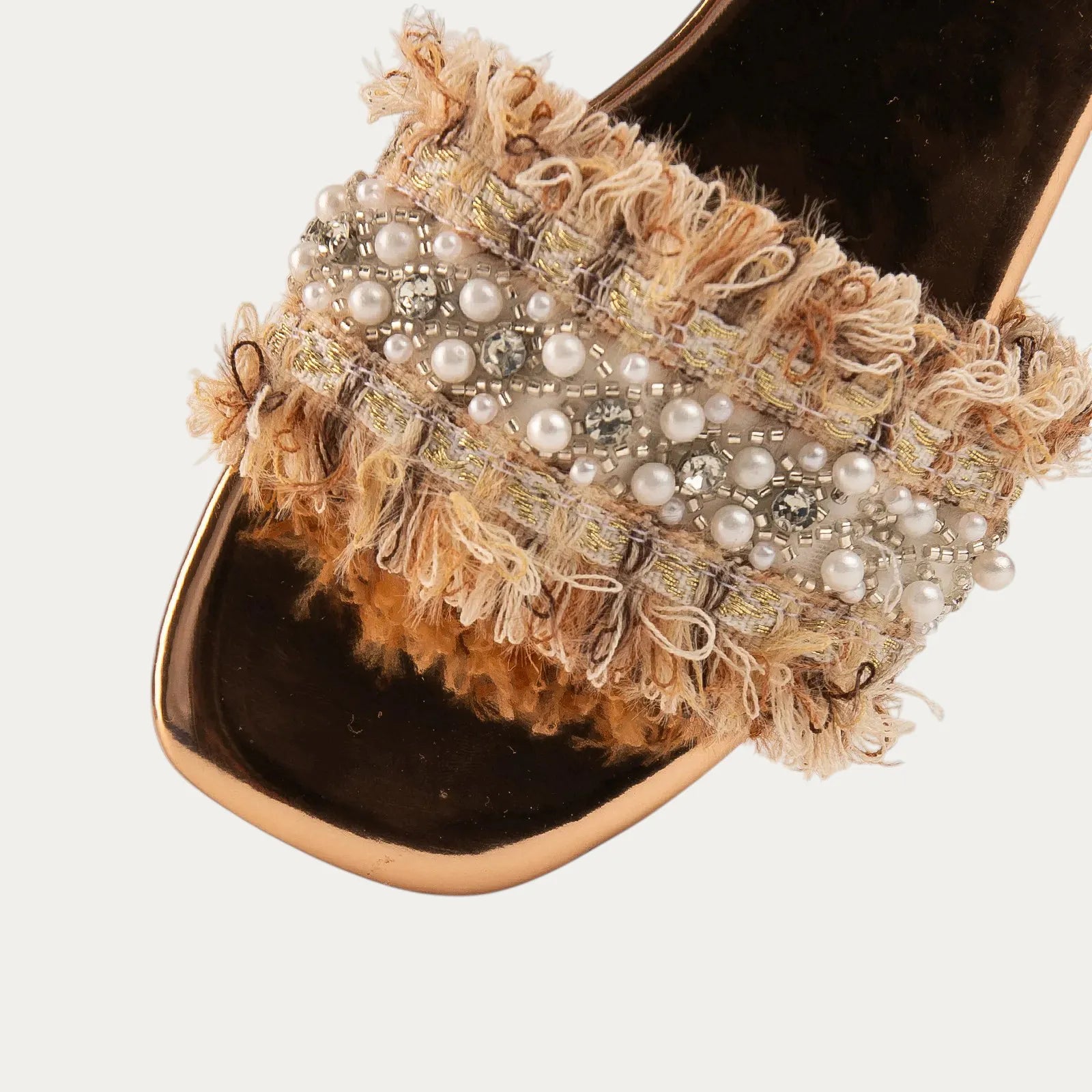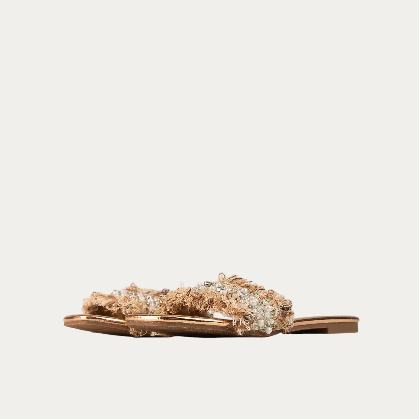 The La Her Noor Champagne Sandal offers a sophisticated blend of elegance and comfort. Its subtle champagne hue adds a refined touch, perfect for both formal occasions and stylish everyday wear. Designed with precision, this sandal provides secure support and a comfortable fit, ensuring all-day ease without sacrificing style. A versatile addition for those seeking understated luxury in their footwear.