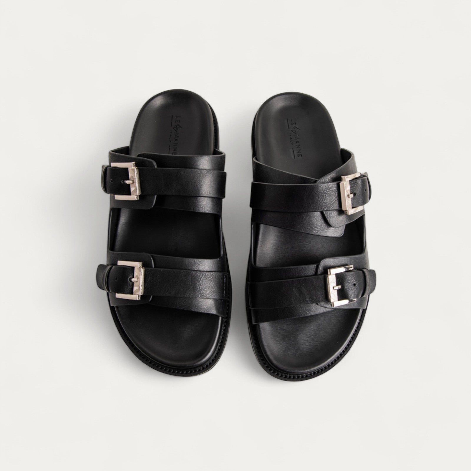 Le Manne Anchor Black Sandal offers a refined blend of style and durability, designed for confident everyday wear. Crafted with high-quality materials, this sandal ensures lasting comfort and support while its sleek black finish complements a versatile range of outfits. Ideal for both casual and semi-formal occasions, it promotes foot stability with a secure fit and sturdy sole, making it a dependable choice for those seeking both elegance and practicality in their footwear.