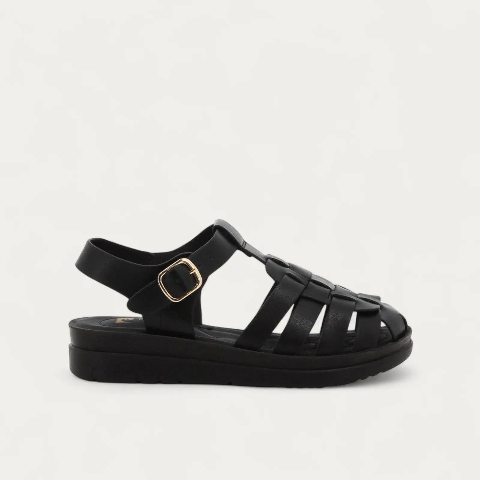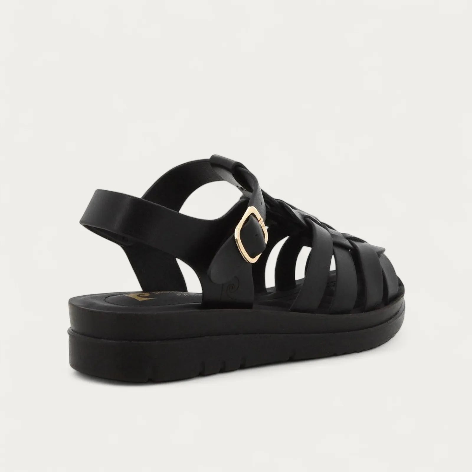 The Pierre Cardin Cella Black Sandal combines refined design with everyday comfort. Its sleek black finish offers versatile style suitable for both casual and formal occasions. Crafted with attention to detail, this sandal ensures a secure fit and durable wear, making it an essential addition for those seeking sophistication and reliability in their footwear collection.