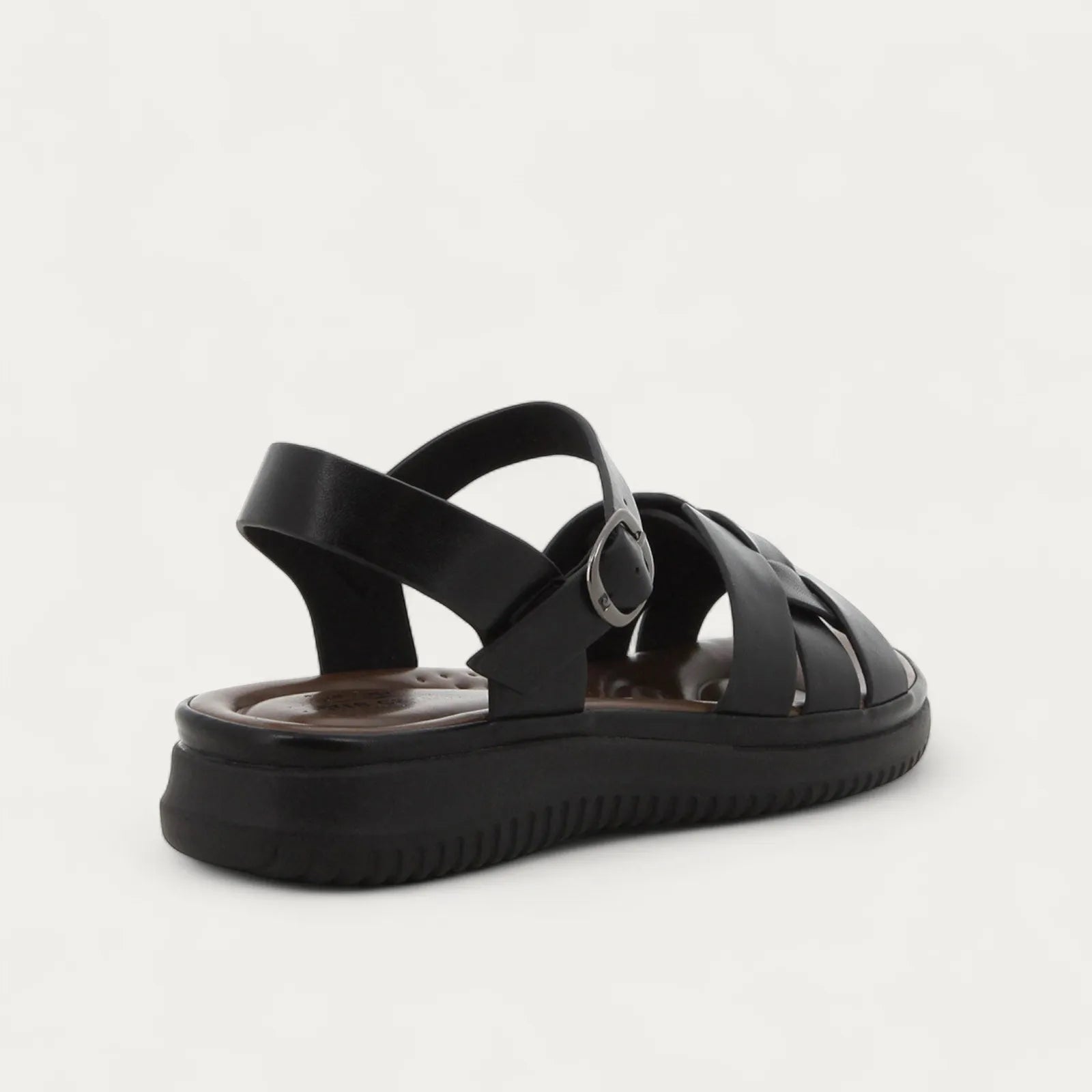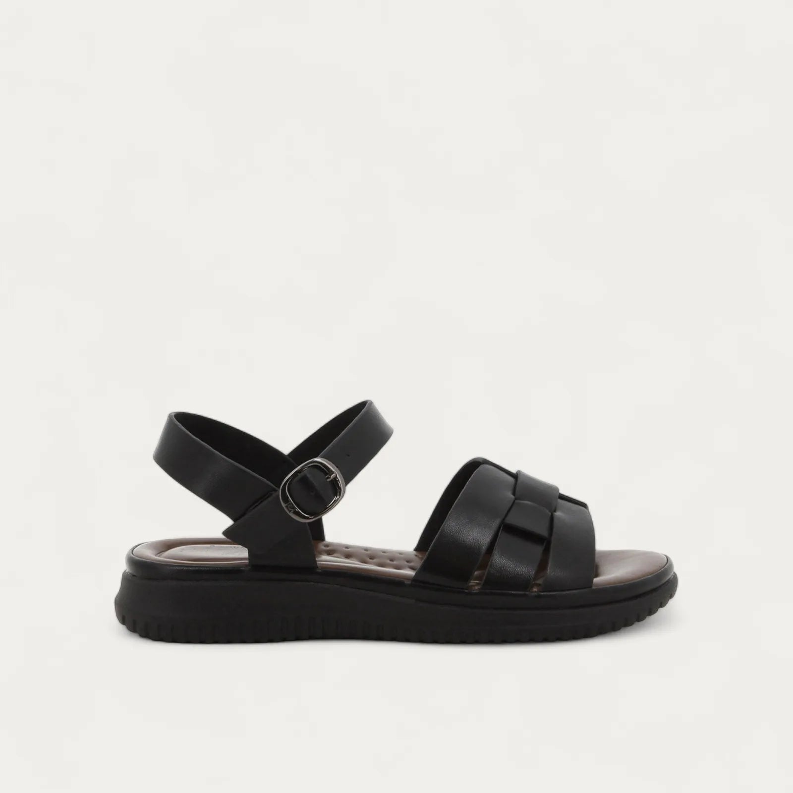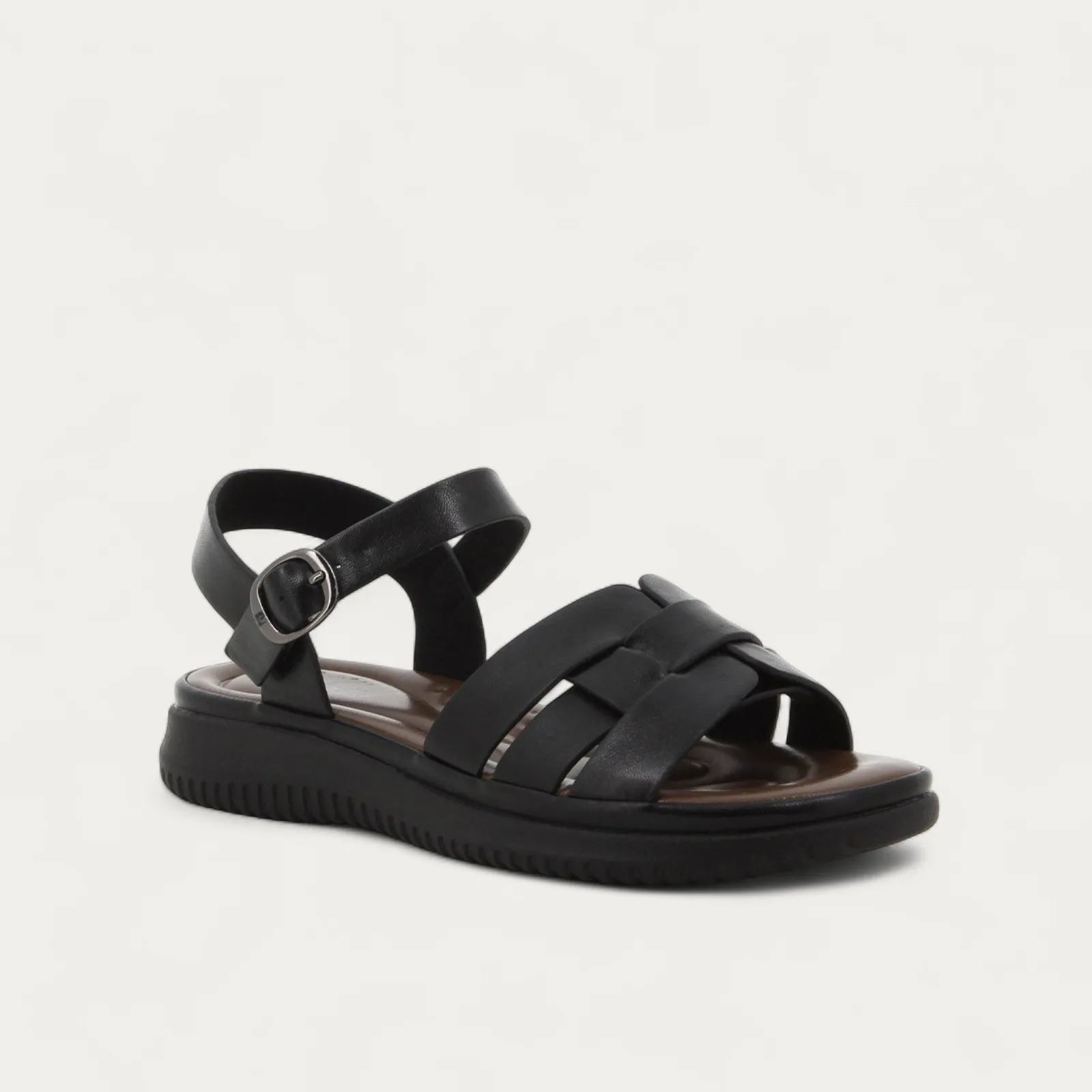 The Pierre Cardin Halay Black Sandal offers a blend of modern elegance and practicality. Designed with a sleek black silhouette, it provides versatile styling options for various occasions. The sandal’s construction focuses on comfort and durability, ensuring dependable wear throughout the day. Ideal for those who appreciate refined footwear with a confident, polished look.
