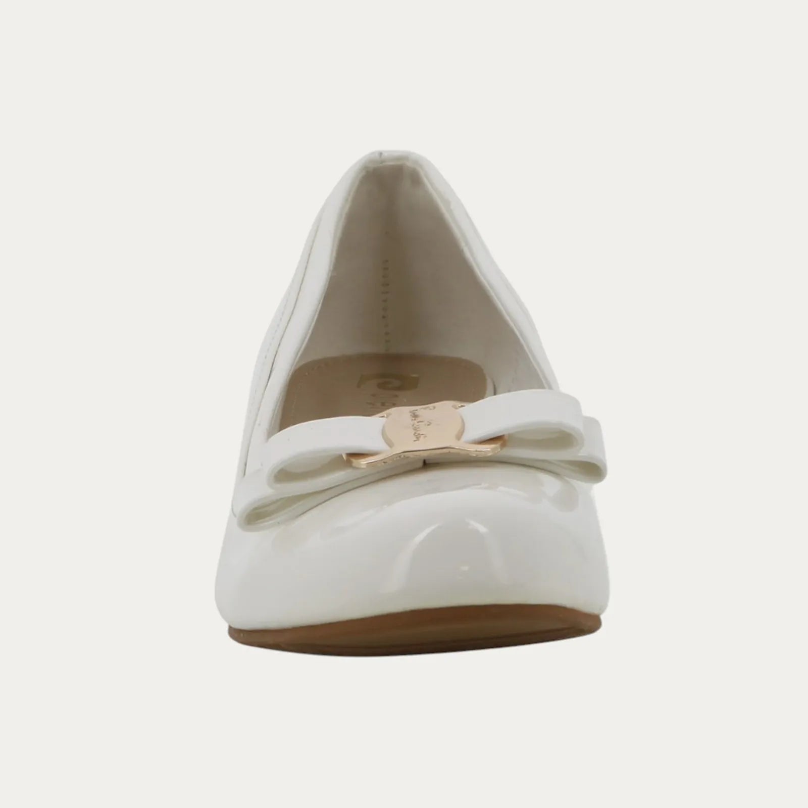 The Pierre Cardin Viera White Heel offers a sophisticated silhouette ideal for formal occasions or elevating everyday attire. Featuring a pristine white finish and elegant heel height, this shoe delivers both style and comfort. Its refined design enhances poise and confidence with every step.
