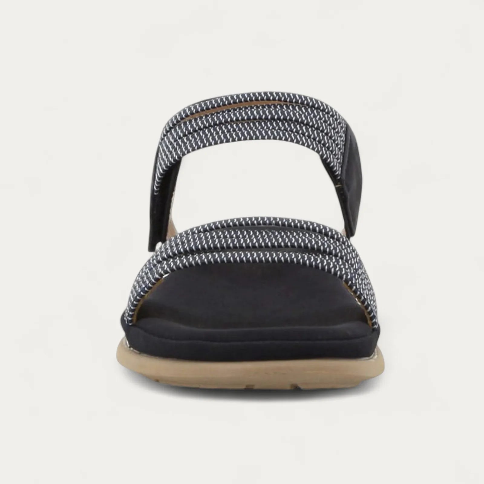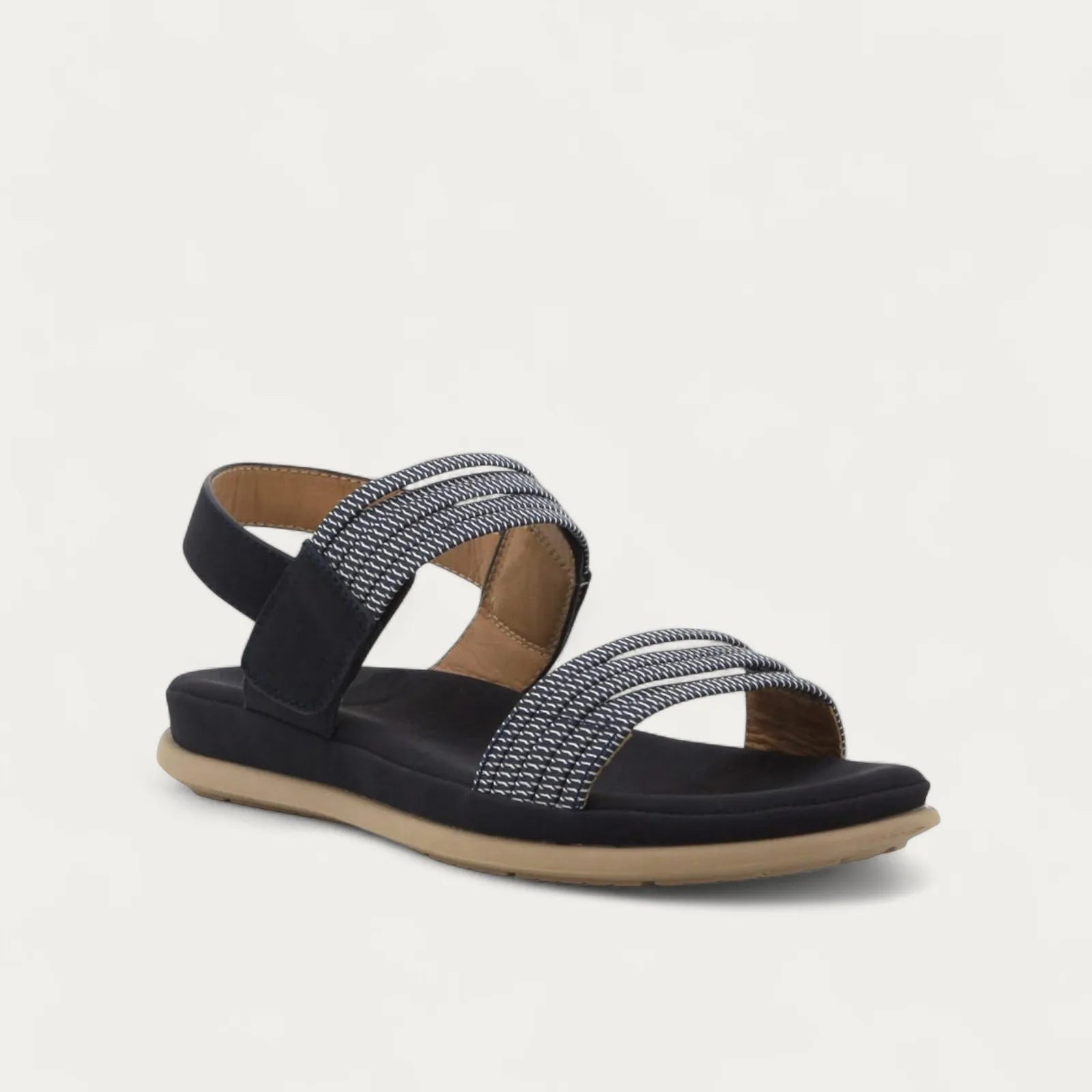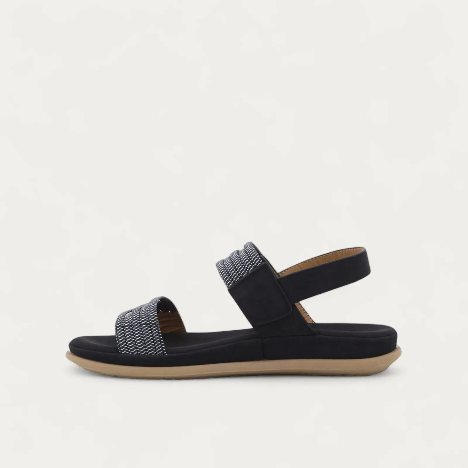 The Soft Style Irene Navy Sandal offers a sophisticated combination of style and comfort. Crafted with a rich navy upper, it provides a versatile look suitable for various occasions. The sandal features a cushioned footbed for enhanced comfort and a durable outsole that ensures stability and reliable traction. Designed for extended wear, it perfectly balances elegance with everyday practicality.
